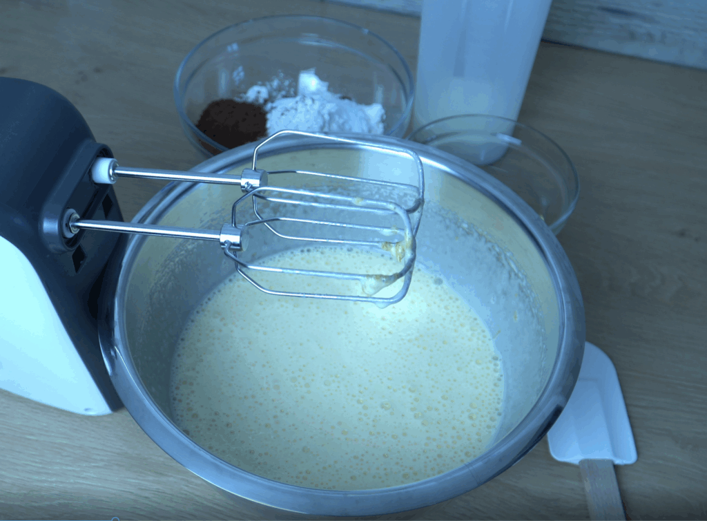 akkor a kakaóporral és sütőporral elkevert lisztet hozzá szitálom