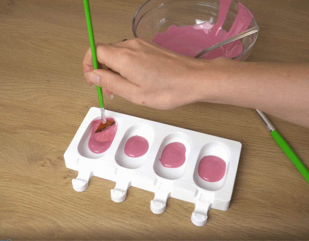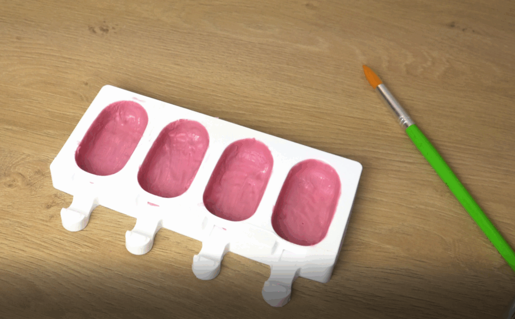 Ha megdermedt még egy réteget viszek fel a forma belselyére a bevonóból,