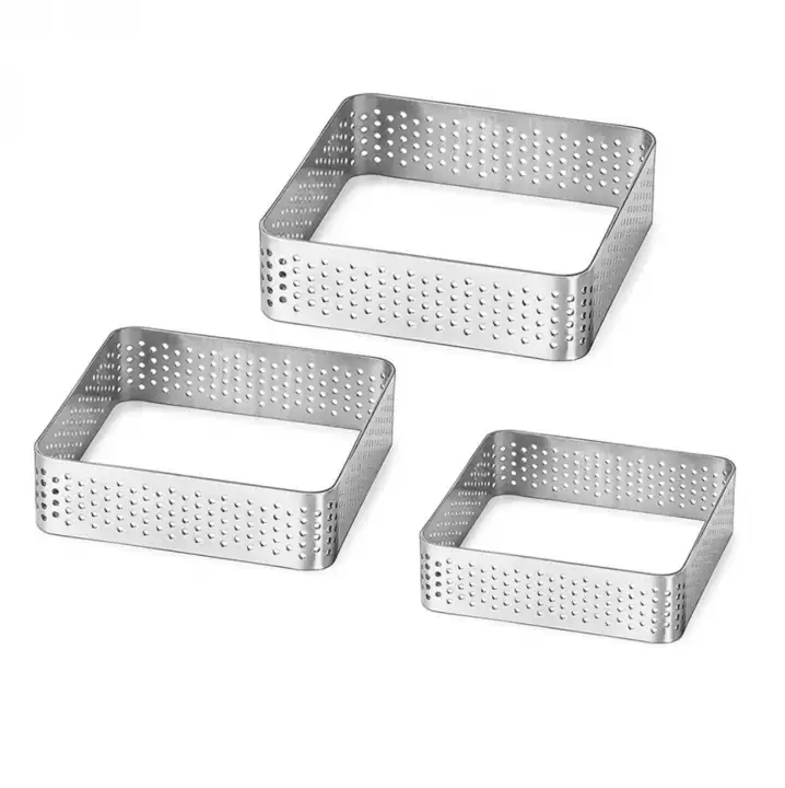 3 darabos fém desszertgyűrű, lyukacsos tarte gyűrű – Négyszög