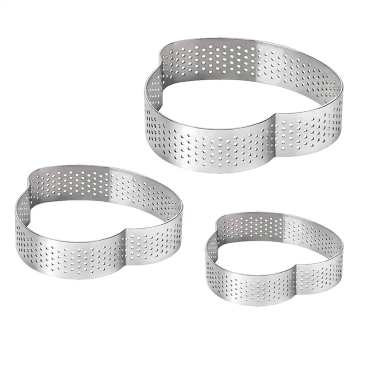 3 darabos fém desszertgyűrű, lyukacsos tart gyűrű – Szív