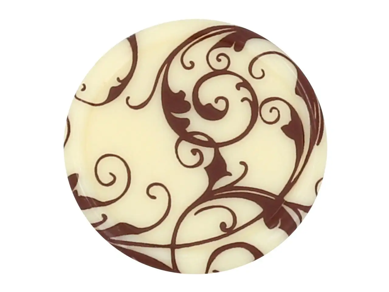 Kerek fehércsokoládéból készült barna kacsokkal díszített csokoládé torta és süti dekoráció 5db