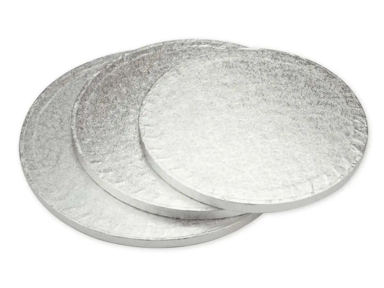 Ezüst, kerek , 35cm átmérőjű és 12mm vastag tortadob.