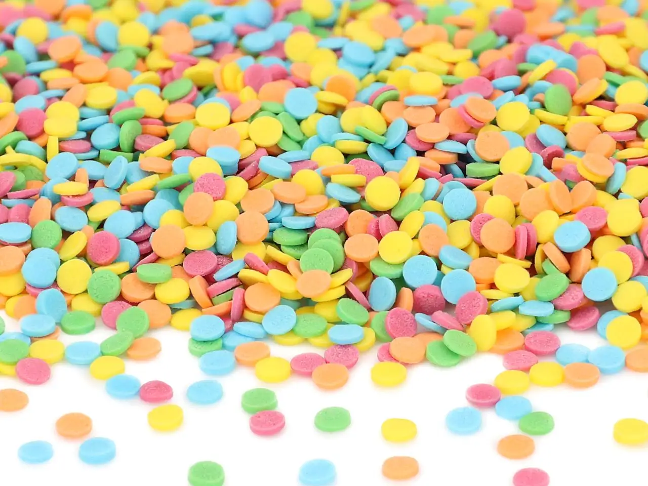 Cukor, napraforgóolaj, burgonyakeményítő, rizsliszt, BÚZAKEményítő, színezékek: E 100 (kurkumin), E 133 (brilliánskék FCF), E 162 (betanin).