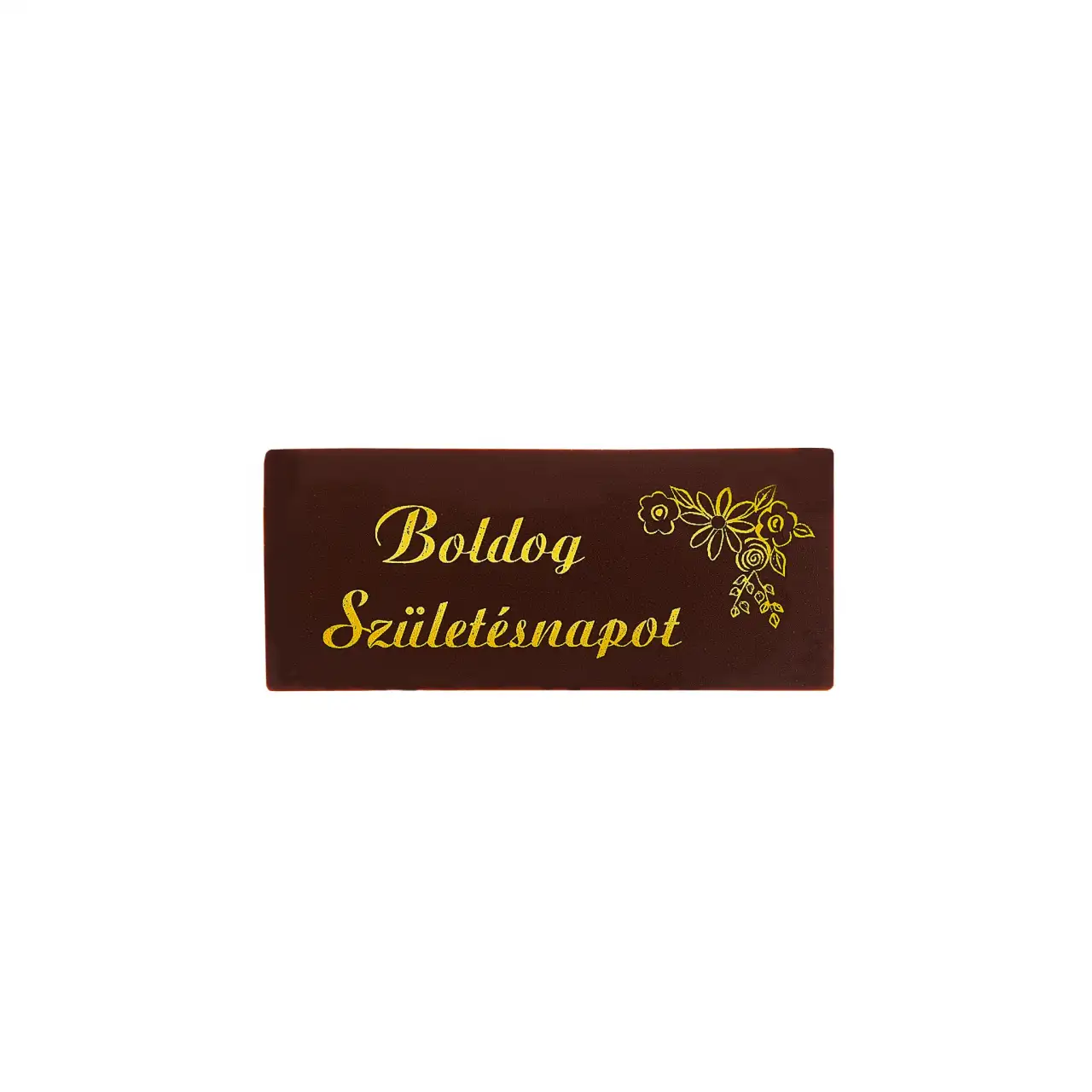 Boldog születésnapot feliratú csokoládé tábla torták díszítéséhez.