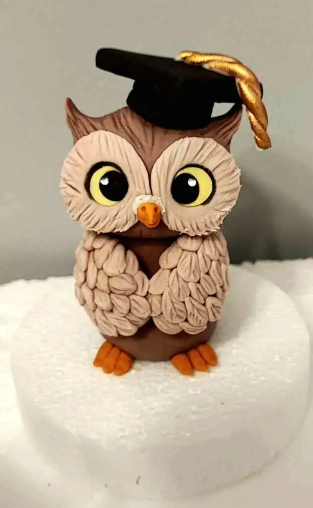 Nem ehető cukorfigura bagoly ballagási torták díszítéséhez.