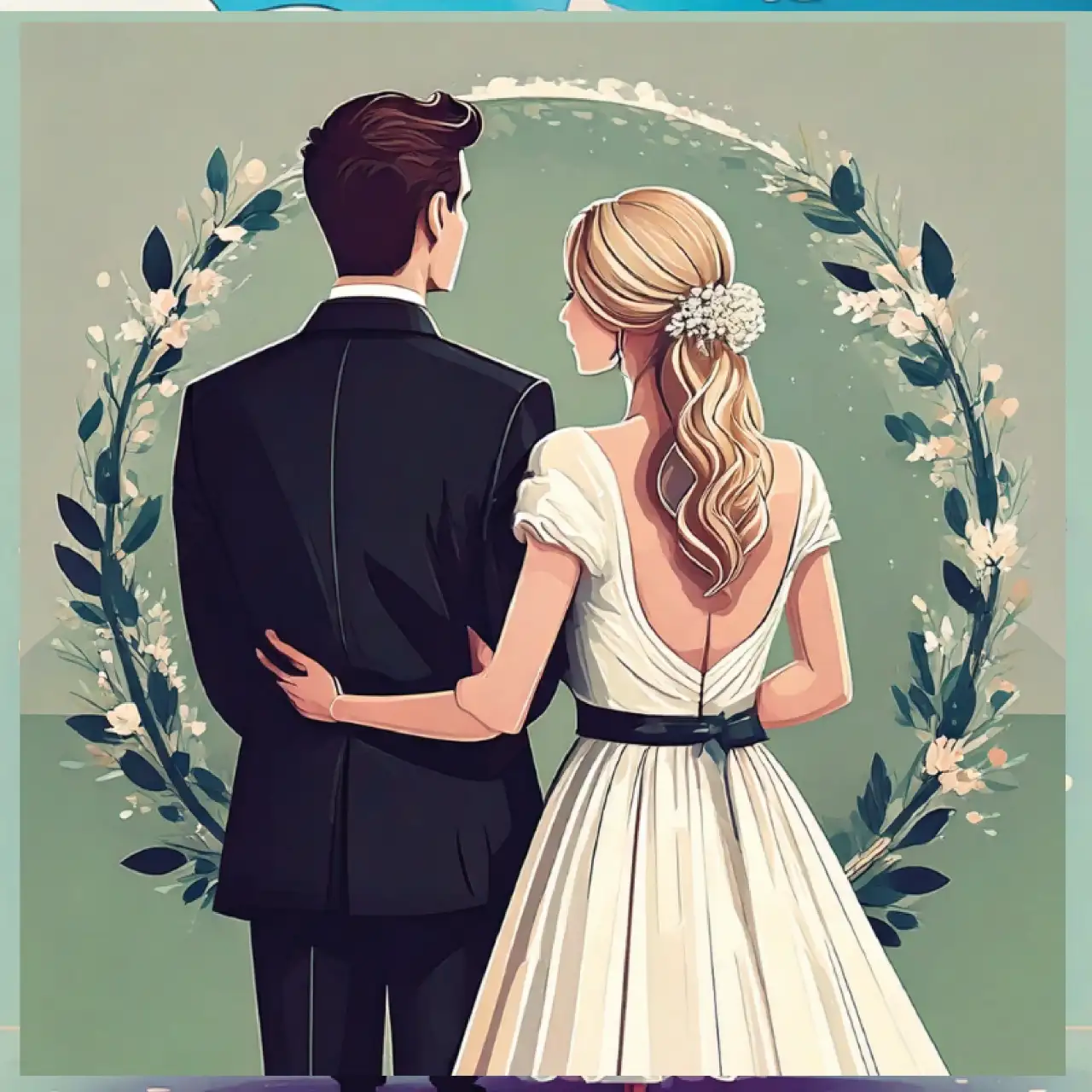 Nyomtatás ostyára vagy fondant papírra / cukorlapra Esküvői pár szögletes (zöld ) 20x20cm