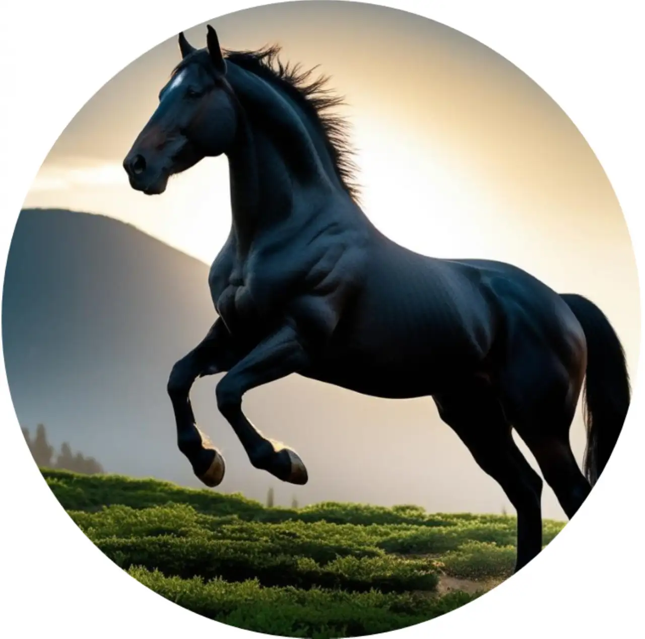 Nyomtatás ostyára vagy fondant papírra / cukorlapra Fekete ló2 kerek 20cm