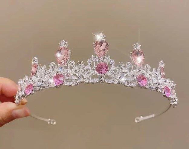 ezüst színű korona rózsaszín kövekkel szülinapra
