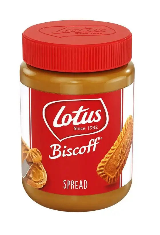 Lotus karamelizát keksz 58% : (BÚZAliszt, cukor, növényi olajok (pálma*,repce), kandiscukor-szirup, térfogatnövelő szer: nátrium-hidrogén-karbonát, SZÓJAliszt, étkezési só, fahéj, * fenntartható gazdálkodásból származó pálmaolaj) repceolaj, cukor, emulgeálószer: SZÓJAlecitin, citromsav. Glutént és szóját tartalmaz.