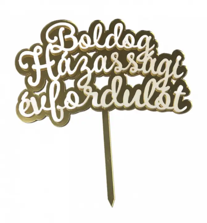 Torta beszúró ” Boldog házassági évfordulót” – arany, akril