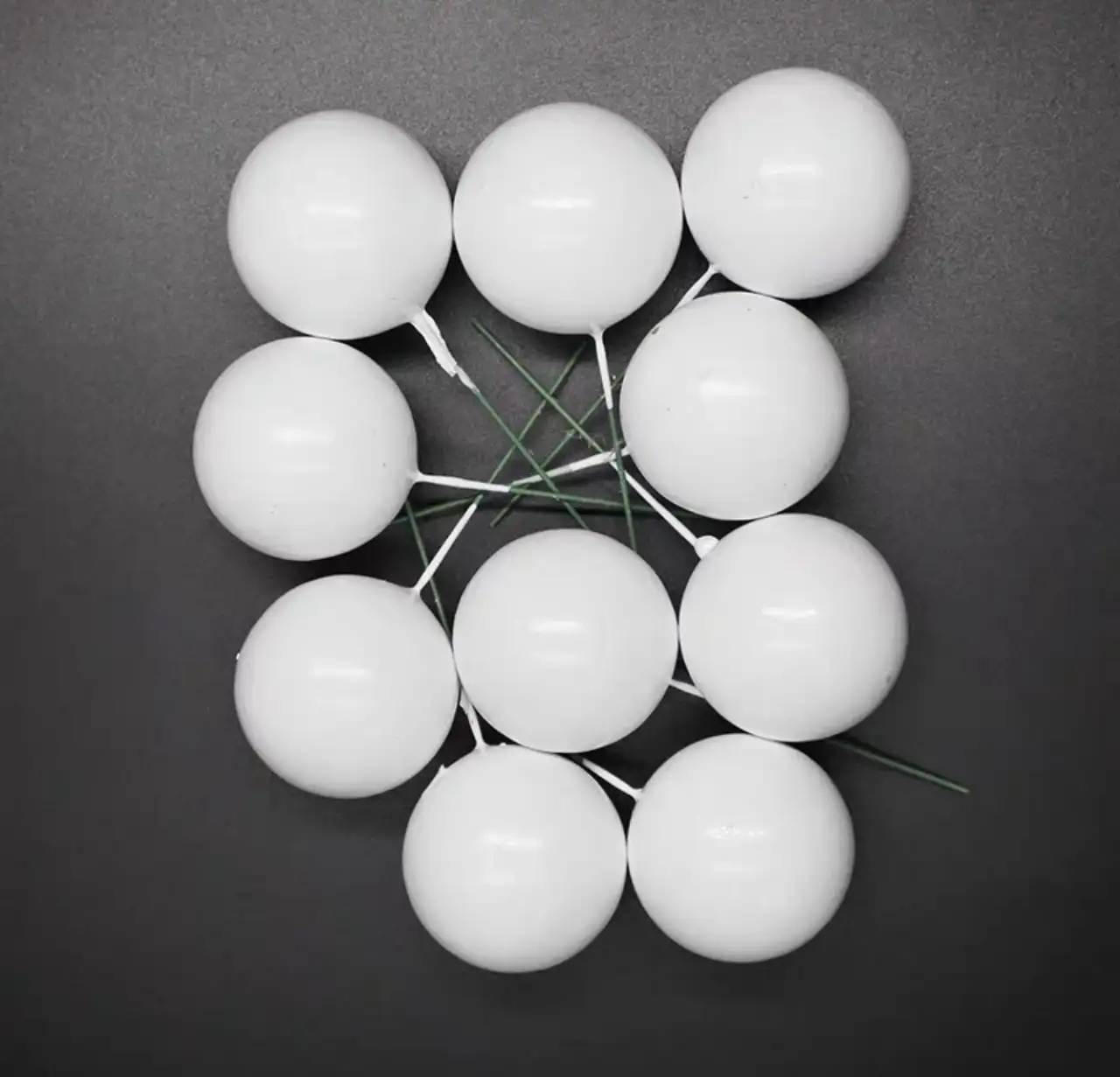 Fehér beszúrható műanyag gömbök torták dekoráláshoz.