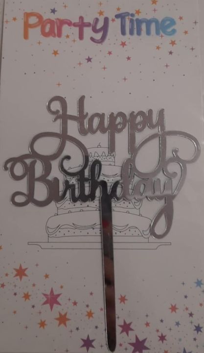 Torta beszúró – Happy Birthday felirat – kötött kis betűvel hurkolt H-val – akril Ezüst