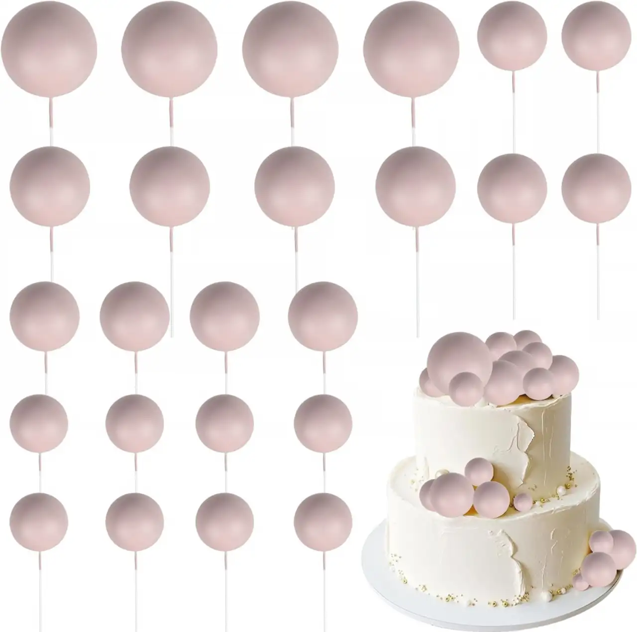 Mályva beszúrható műanyag gömbök torták dekoráláshoz.