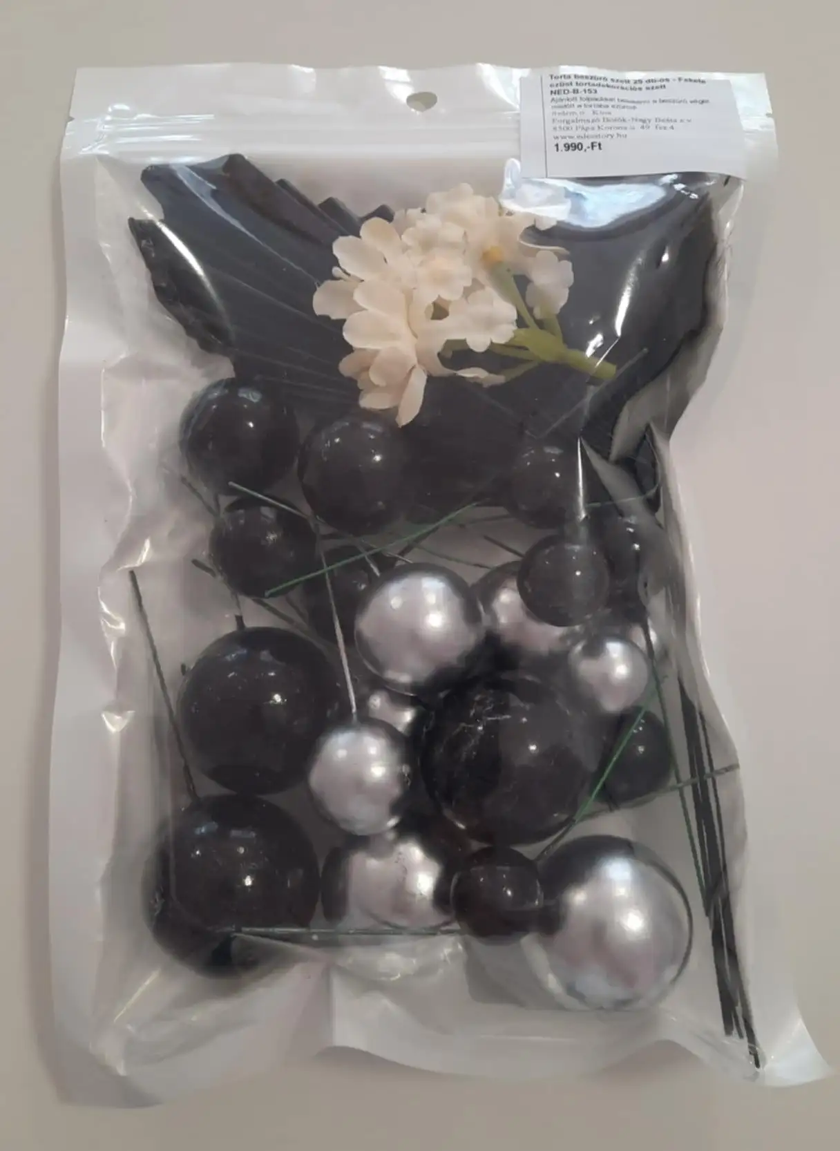 25 részes vegyes fekete – ezüst színű tortadekorációs készlet!