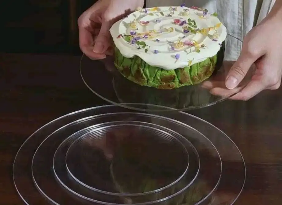 Áttetsző akril tortaalátét, ami segítségedre lehet az egyenletes burkolásban is.