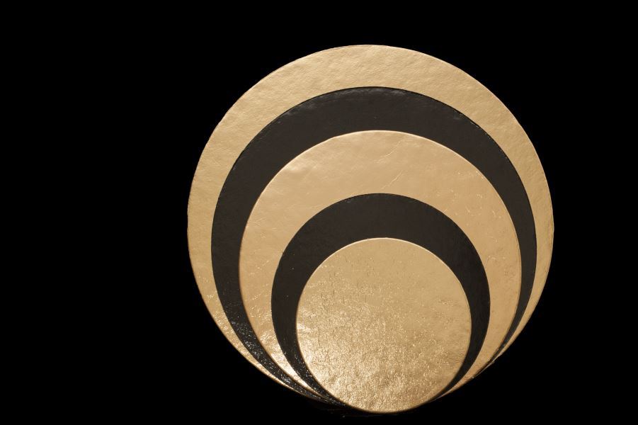 Fekete-arany , kerek, 26cm átmérőjű tortaalátét erős anyagból.
